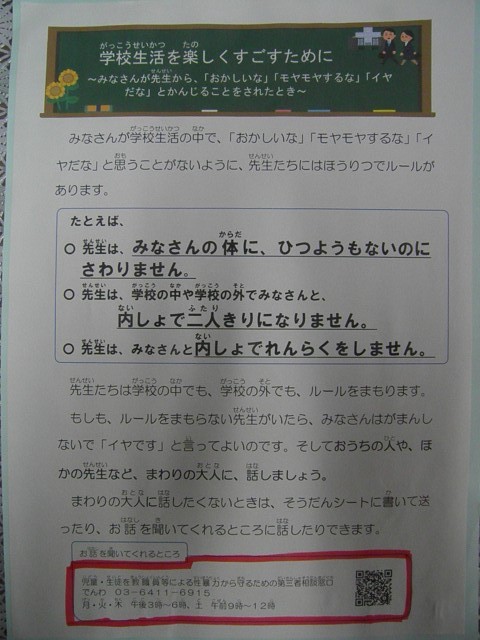 12月8日(月)登校時間に、代表委員会による挨拶運動で気持ちのよい挨拶が交わされました。全校朝会では、「学校生活を楽しくすごしために」というテーマで校長から話しました。本日、相談シートとともに書面を配布します。また、バドミントンや絵画、漢字検定など4件の表彰がありました。学生書道展に入賞した6年生には、書初めを上手に書くアドバイスをしてもらいました。