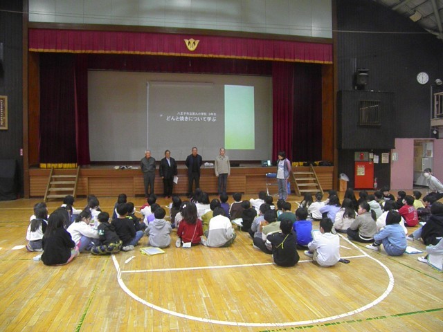 12月19日(金)4校時に3年生は、4つの町会の代表者の方に来ていただき、「どんど焼き」について学びました。どんど焼きについて質問にこたえていただいたり、町会ごとに説明していただいたりとたくさんのことを学ぶことができました。