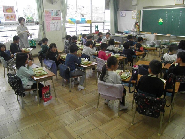 12月24日(水)2学期も残り2日となり、各クラスでまとめの授業が行われていました。5年生では、子どもたちが企画したレクリエーションに楽しそうに取り組んでいました。また、今日は給食の最終日でした。クリスマス特別献立で子どもたちがニコニコでいただいていました。おいしい給食をいつもありがとうございます!