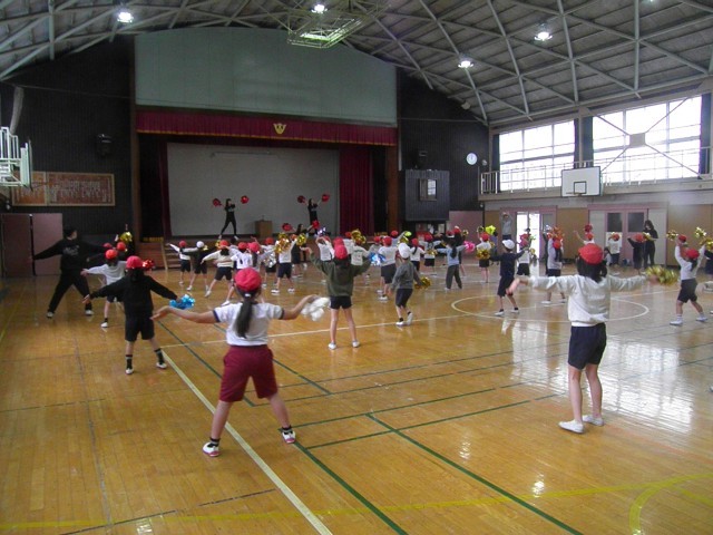1月20日(火)3校時に1年生、4校時に2年生が、八王子ビートレインズのレイリーズの方々を講師に招き、「八王子のうた」チアダンスにチャレンジしました。レイリーズの方々の上手な指導で、どんどん振付を覚える子供たち。最後には通して踊れるようになりました。2月7日(土)15:00からは第九小学校のはちっ子マッチデイ、1月23・24日のご案内のチラシもいただきました。みんなで八王子ビートレインズを応援にいって、レイリーズのチアダンスをご覧いただけたらと思います。