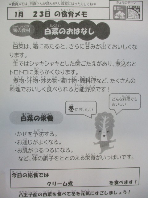ツナとコーンの混ぜご飯、八王子産白菜のクリーム煮、ゆずみつフルーツ、牛乳