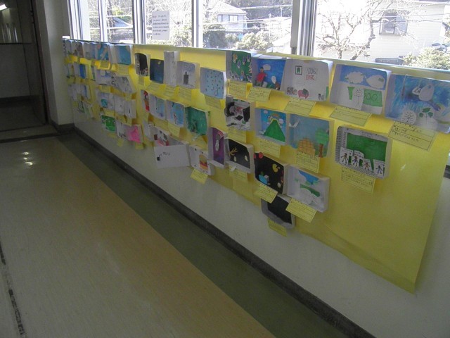 2月4日(水)第九小学校の九つの取組の【え】「絵が好き、絵になる」にちなんで、校内には子どもたちのすてきな作品が展示されています。2階の廊下には、2学期に5年生が「あったらいいな」という思いを込めて作ったドリームボックス、3学期に4年生が版画を楽しみながら作ったつながる絵画が展示されています。子どもたちの作品が展示してあることで学校が明るくなり、学び合いにつながっています。