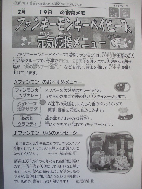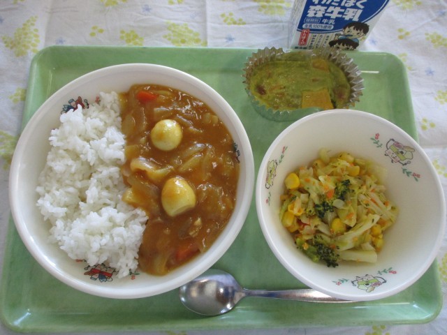 ファンモン★エッグカレー、ベイビーズ太陽サラダ、桑の都クラフティ、牛乳