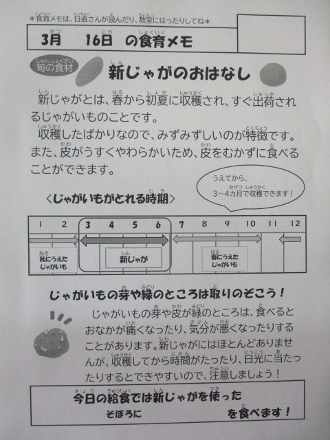 ご飯、魚の照り焼き、新じゃがのそぼろ煮、五色和え、牛乳
