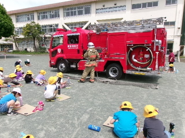 近くで消防車を見せていただき、子どもたちはその大きさを感じながら、よく見て一生懸命に描いていました。貴重な経験をありがとうございました。