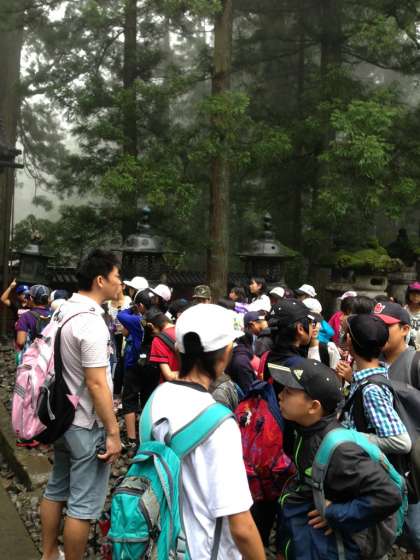 東照宮は、これで終わりです。今からトイレに行き、バスに乗ります。いろは坂をのぼり華厳の滝に行きます。霧雨です。華厳の滝は、観れるでしょうか。子供たちは元気です。