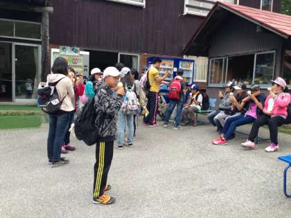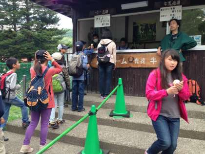 光徳牧場のアイスクリームを食べています。これから、午後のハイキングです。