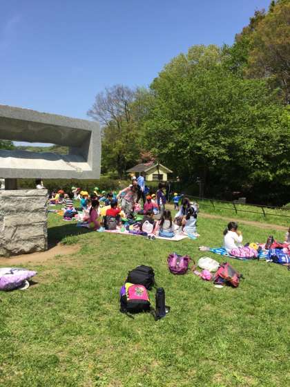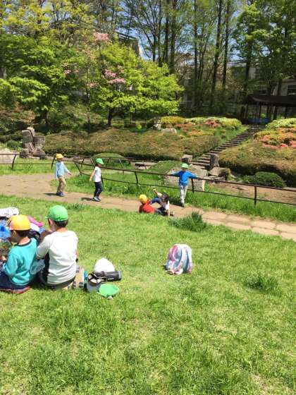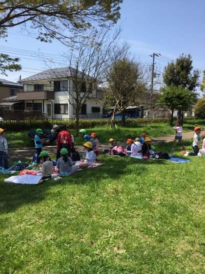 お弁当やおやつを思い思いに食べています。食べ終わったらはんで遊びます。