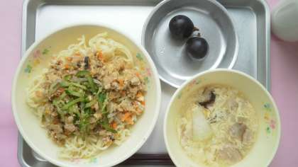 9月12日(火)ジャージャー麺、とうがんスープ、くだもの(巨峰)、牛乳