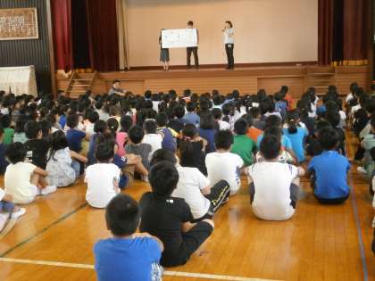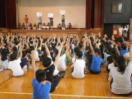今日の朝は給食委員会が集会を開きました。