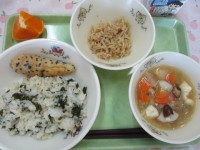 たこめし、うずら卵の甘辛煮、呉汁、野菜のごま風味、牛乳
