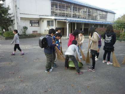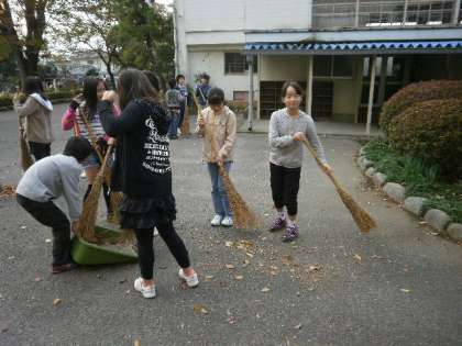 9日、5年1組の子供たちが落ち葉掃きをしてくれました。前日、2年2組が掃いてくれたのですが、まだまだ落ち葉の季節です。今日もいっぱいたまっていましたが、さすが5年生。あっという間にきれいになりました。