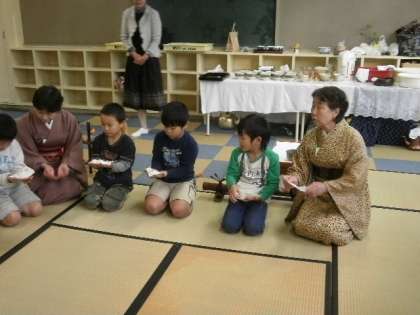 2年生も数が多いので、女子・男子に分かれて行いました。10日は3年生が「お茶会」を体験する予定です。
