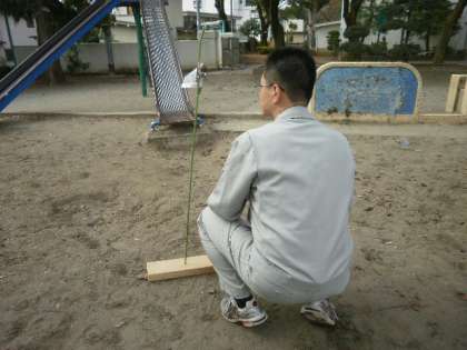 測定場所は「第4昇降口横花壇」と「すべり台のある砂場」です。いずれも子供たちが多く通ったり、遊んだりする場所です。地上5cmと1mで5回実施し、平均値をとります。