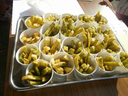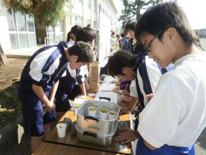 また、第二中学校の料理部の生徒さんが、学校の畑で採れたサツマイモを揚げた「サツマイモチップス」を作ってきてくれました。さすが中学生ですね。とてもおいしそうです。