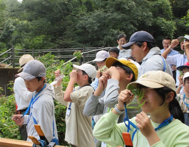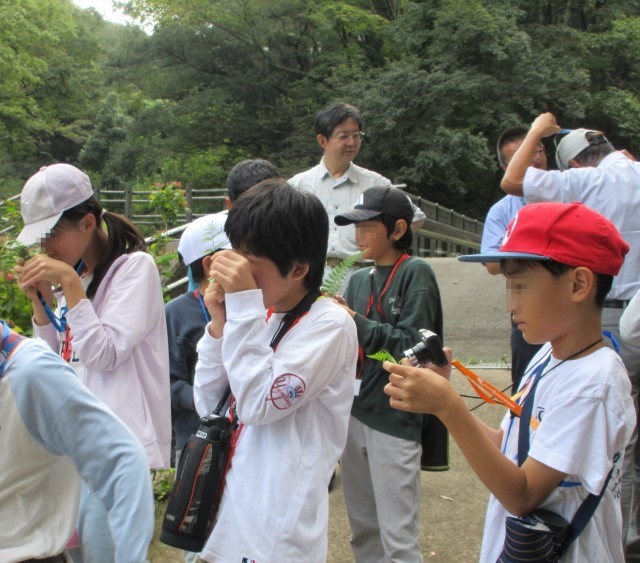 ルーペで葉脈を観察したり、双眼鏡で遠くの植物の様子を観察したり
