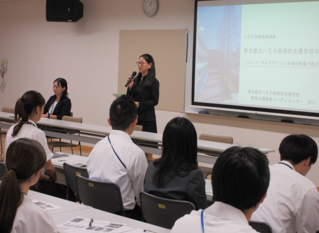 ユニバーサルデザインを取り入れた教室環境、学習環境に注目しながら、初任者は意欲的に学んでいました。
