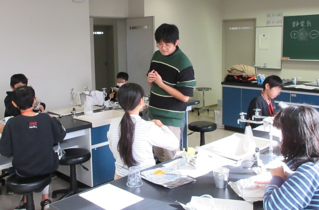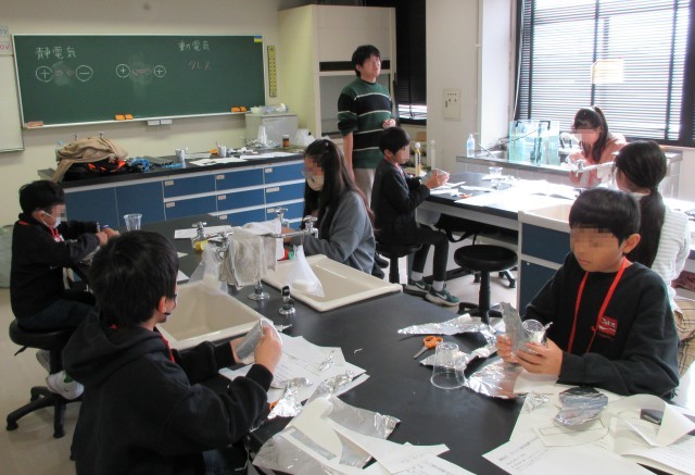実技研修室では、「静電気の不思議」がテーマのわくわく理科実験が行われました。