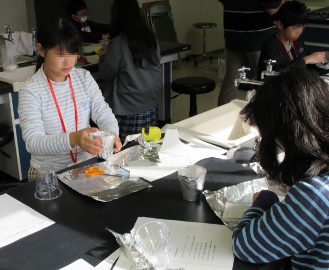 などを学んだあと、実際に「ライデン瓶」を作って静電気を溜め、