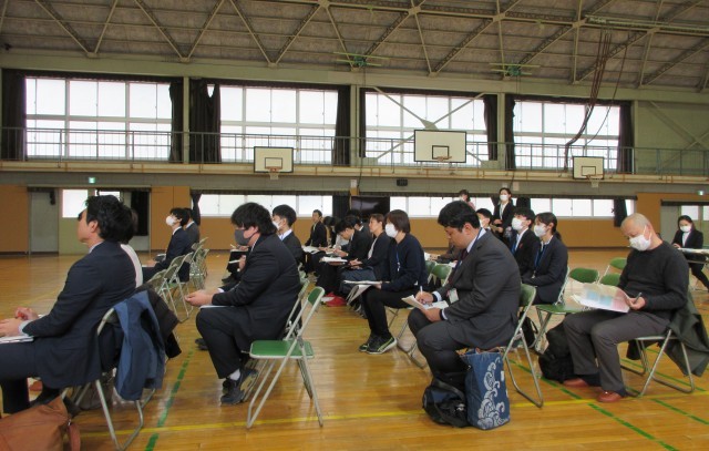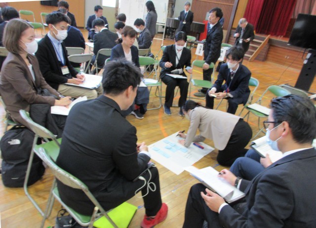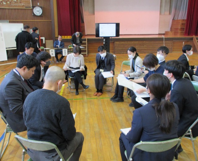 散田小の先生と他校の先生が入り混じって3つのグループに分かれ、