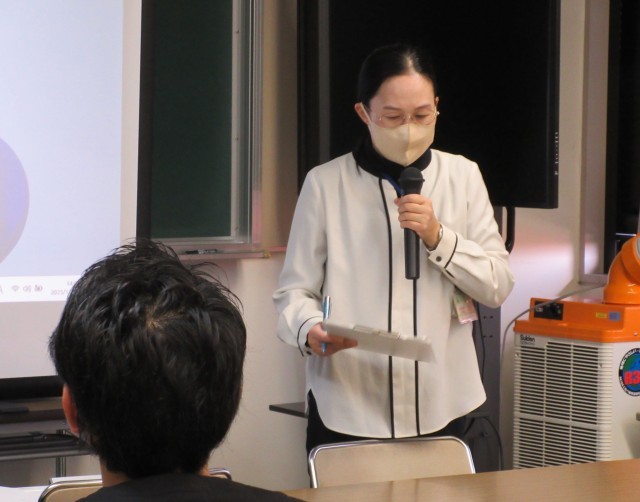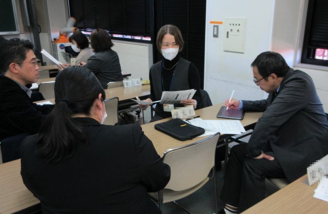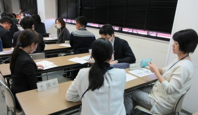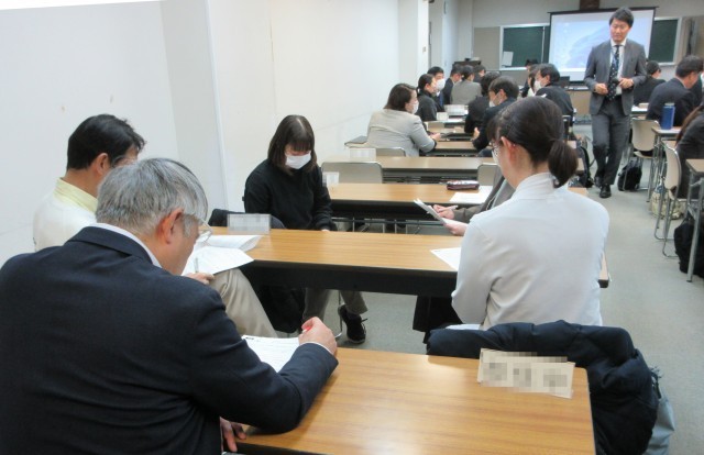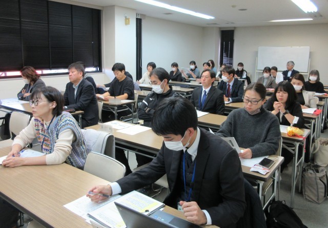 あいさつの後、市内小中学校の授業力マイスターから事例発表があり、