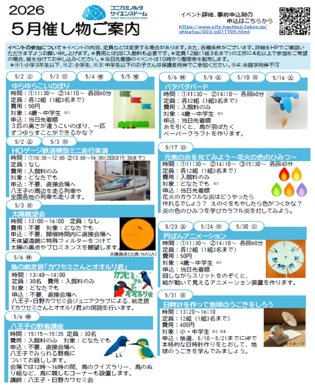4/21( 火 ) コニカミノルタサイエンスドーム 2026 5月催し物ご案内