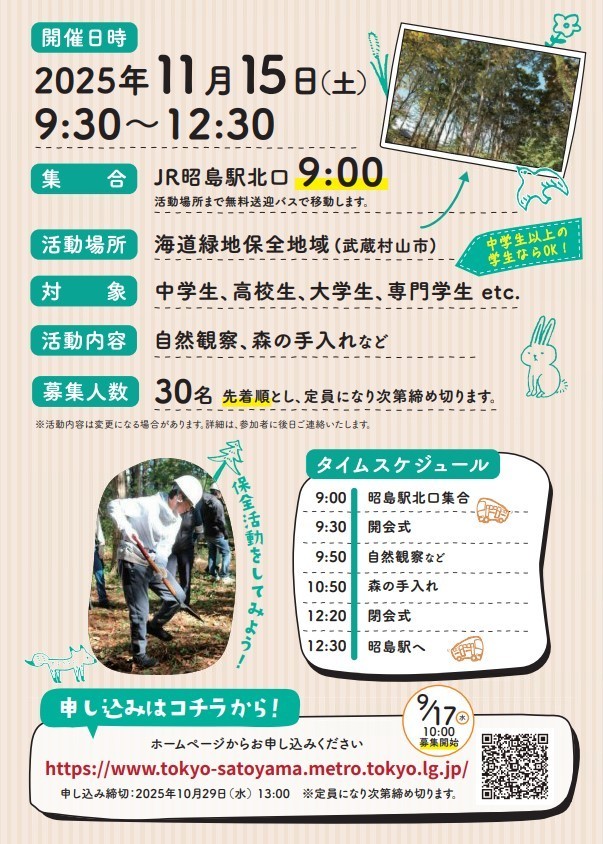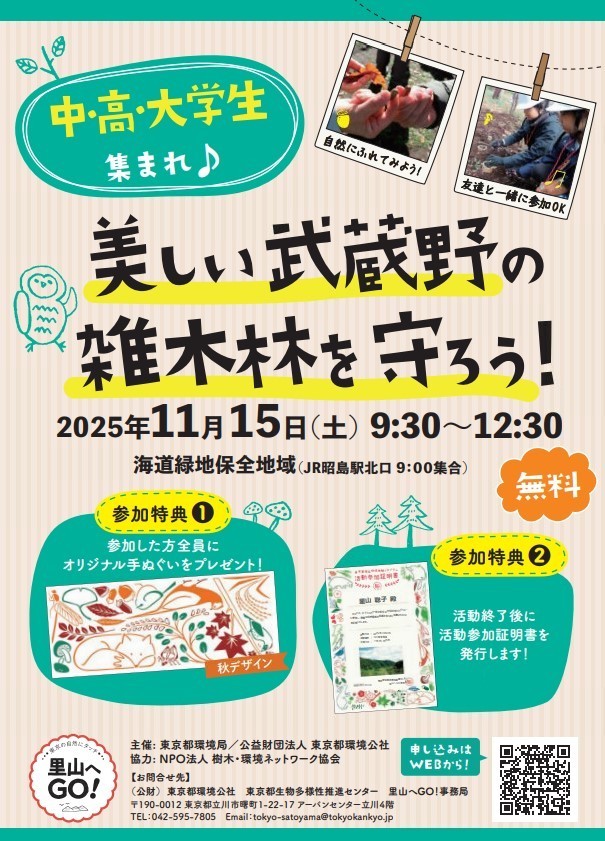 - 中学生・高校生・大学生限定 美しい武蔵野の雑木林を守ろう!(外部リンク)