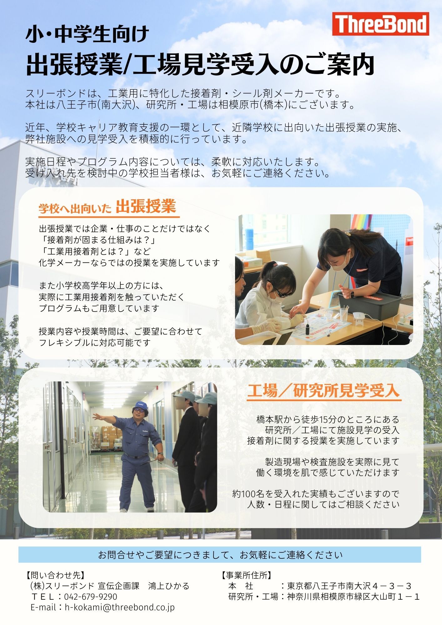 詳細・お問い合わせ・お申込みは「(株)スリーボンド 出前授業案内」をご覧ください。