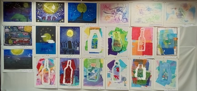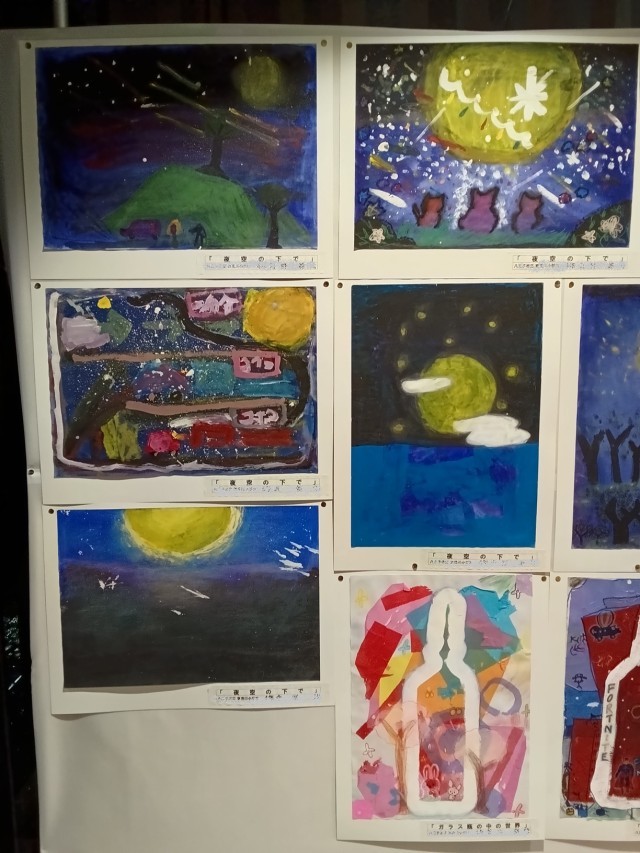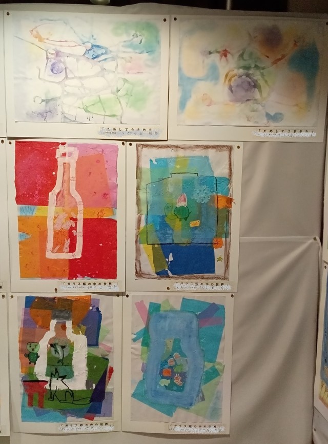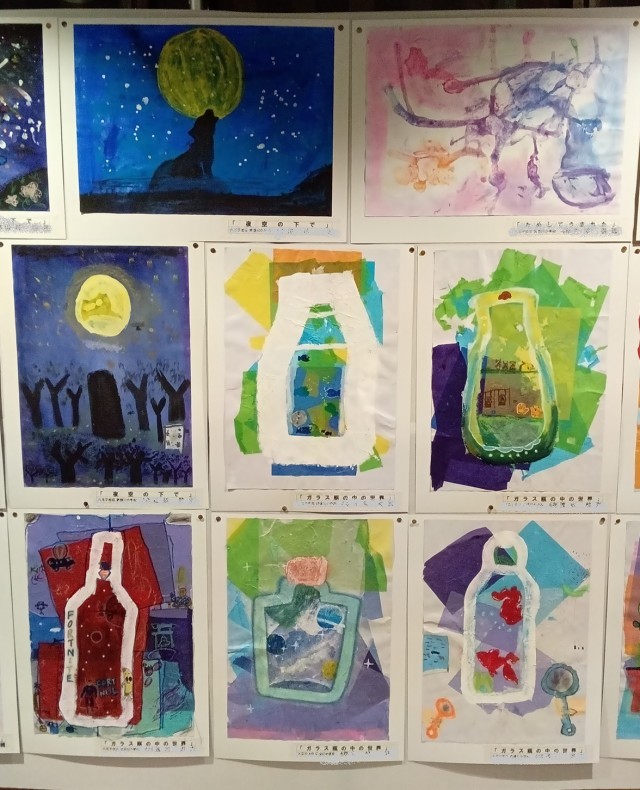 入口すぐのところに、本校児童の絵画作品が20点、出展されています。
