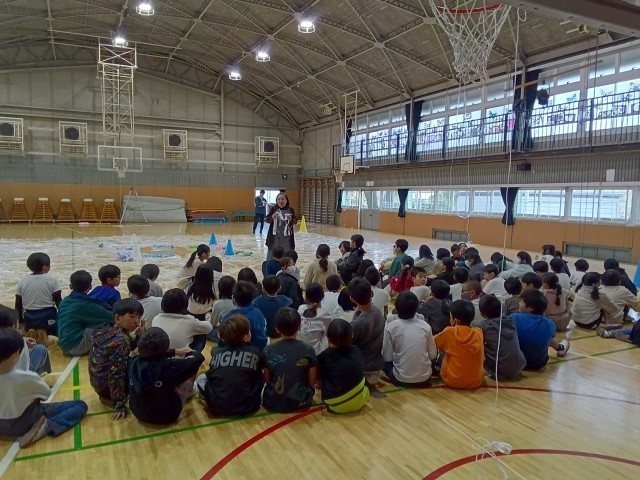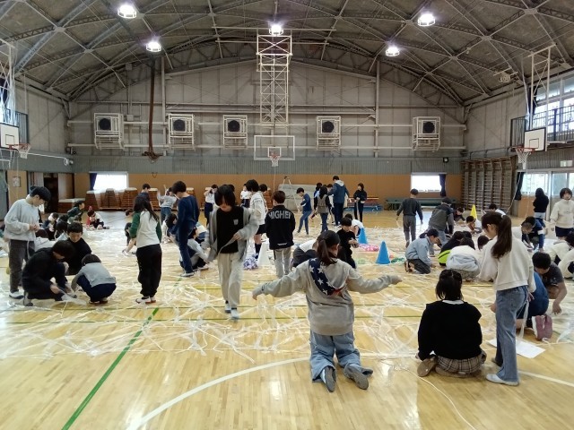 本日は展覧会へ向けて、全校装飾を作成しています。写真は4年生の活動の様子です。