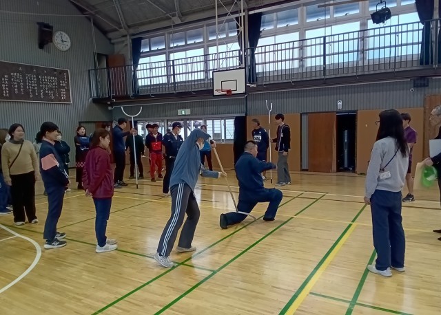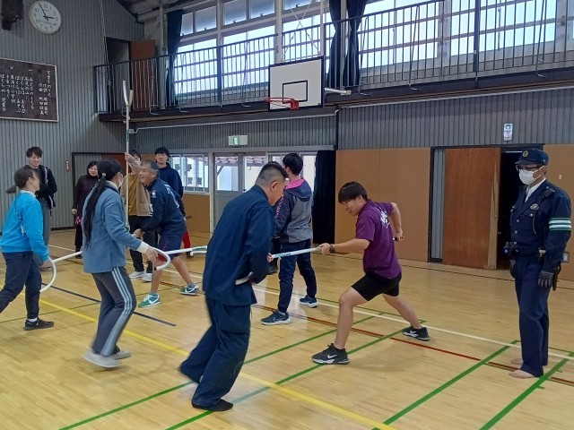 児童の避難及び教職員の不審者対応訓練の後(児童の下校後)、教職員を対象に、さらに細かく対応の仕方について、高尾警察の方から指導を受けました。
