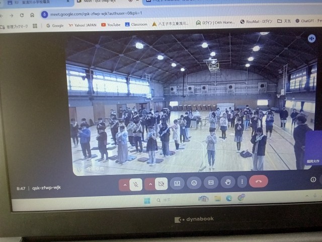 感染対策のため、終業式はオンラインで行いました。