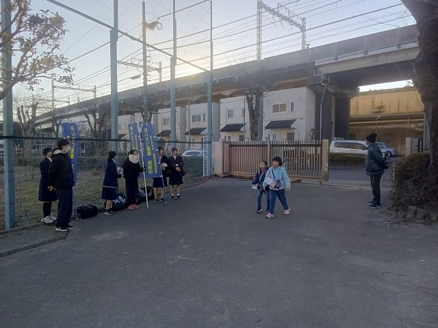 1月8日の3学期始業式から本日まで、青少対を中心としたあいさつ運動が行われました。陵南中学校の生徒さんも部活のアピールをしながら参加してくれました。寒い中、ありがとうございました。