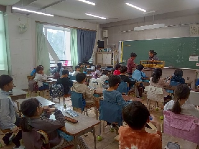 3年生のそろばんの授業は、そろばんの講師の方に来ていただき、指導を受けました。