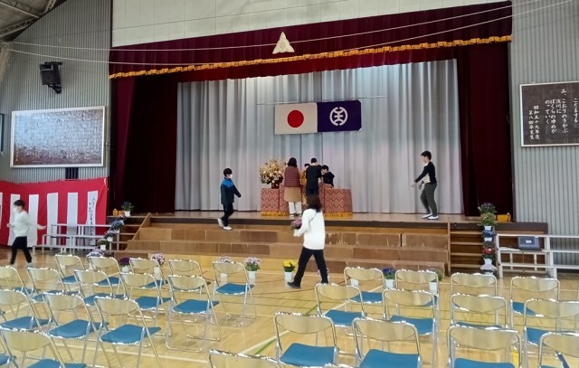 卒業式、前日準備(5年生)
