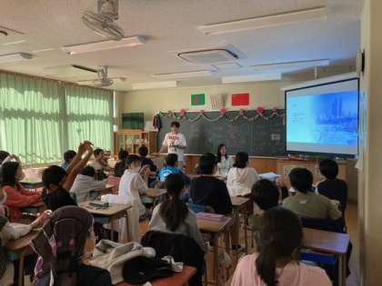 11月24日の3〜4時間目に、6年生が中国とバングラデシュの方々をお招きし、国際理解学習を行ないました。3時間目は校庭でゲームやドッヂボールを楽しみ、4時間目は教室でそれぞれの国について映像を見ながら説明していただきました。給食も一緒に食べていただきました。