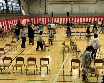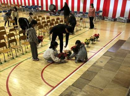 予定の時間よりも早く、入学式の会場づくりまで終わらせました。