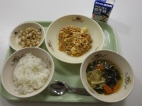 ●今日の給食●・ご飯・マーボー豆腐・ポップビーンズ・中華スープ・牛乳◆献立紹介【...