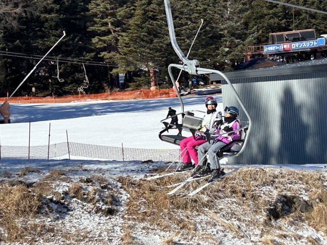 初心者ではない人達は、リフトに乗ってスキーをしてます。