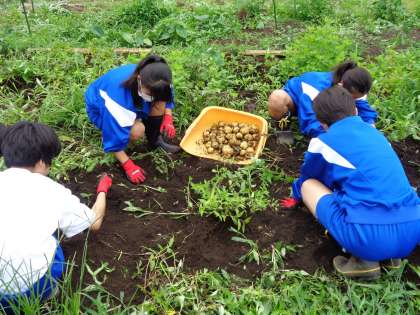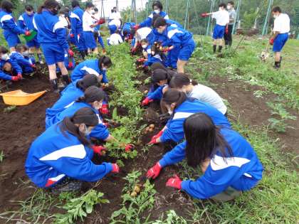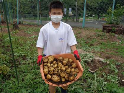 1年生は、初めての収穫作業です。土の中から出てくるじゅがいもに興味津々です。
