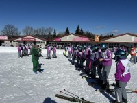 スキー講習始まりました。インストラクターの方の指示で、体操したり、話を聞いたり、スキー板等の準備をしています。