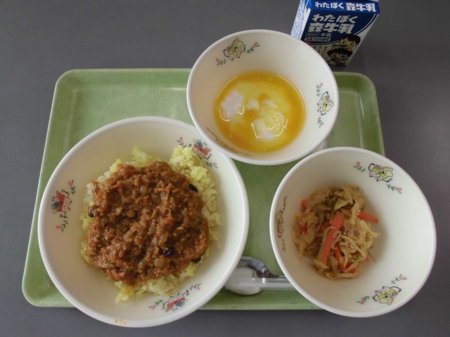 *献立名* ・ドライカレー・じゃこサラダ・ヨーグルトのパッションフルーツソ...