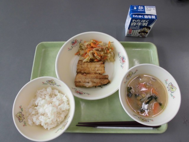 *献立名*・ごはん・さばのみそ煮・変わりきんぴら・沢煮椀・牛乳 旬のさばを提...