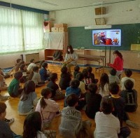 図書支援ボランティアによる3年生へのボランティアです。焼き魚ののろいという本が人...