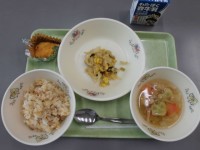 *献立名* ・ピラフ・コーンサラダ・野菜スープ・スイートパンプキン・牛乳 ...