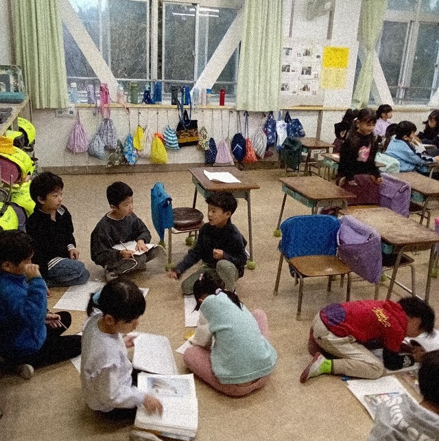 展覧会の片付けも最後です。今日は2年生と5年生が片付けを協力して行いました。ありがとうございます。1年生国語ではうみへのながいたびをグループで協力して発表します。しっかりと話し合えていました。また、3.4年生は朝の時間にどろけいです。元気いっぱい走っていました。