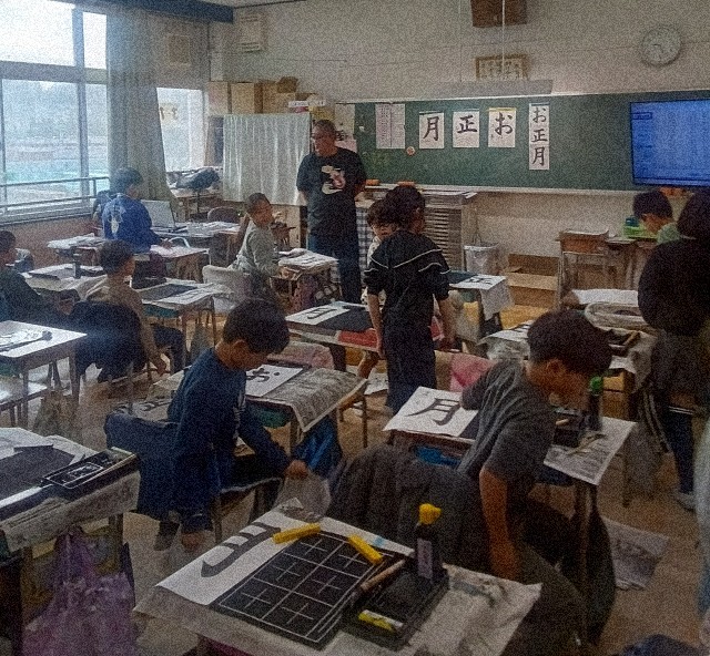 2年生の図書の時間です。冬休み借りる本を探していました。3年生の書写の時間には書き初め練習です。6年生は卒業作文の完成に向けて一生懸命取り組みました。