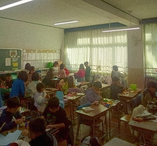 終業式まであと3日。2年生の学級活動では折り紙で飾りを協力して作っています。6年生のソフトバレーボールです。ワンバウンドがノーバウンドのルールにかわりました。みんなでレベルアップですね。4年生の学級活動でもお楽しみ会の話し合いです。提案し、遊び方や細かいルールを決めていました。