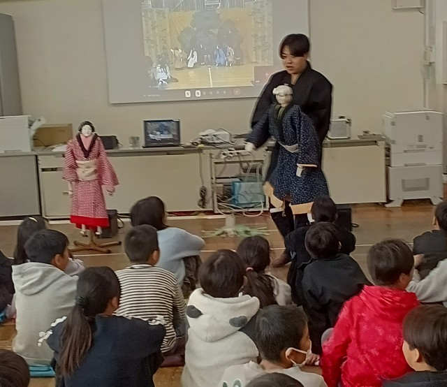 八王子市の笑顔と学びの体験活動プロジェクトとして車人形の西川古柳座さんが来校し、車人形の説明や体験会をさせてくれました。笑顔いっぱいの時間となりました。