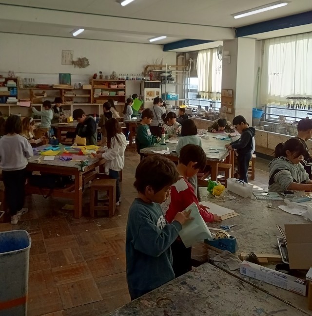 5年生ではキセキという曲を合奏練習しています。保護者の皆様には馴染みの曲ですね。3年生図工ではリサイクル用紙を活用した自分達だけのバックづくりです。2年生国語では漢字についてわかったことや気付いたことを話し合っていました。